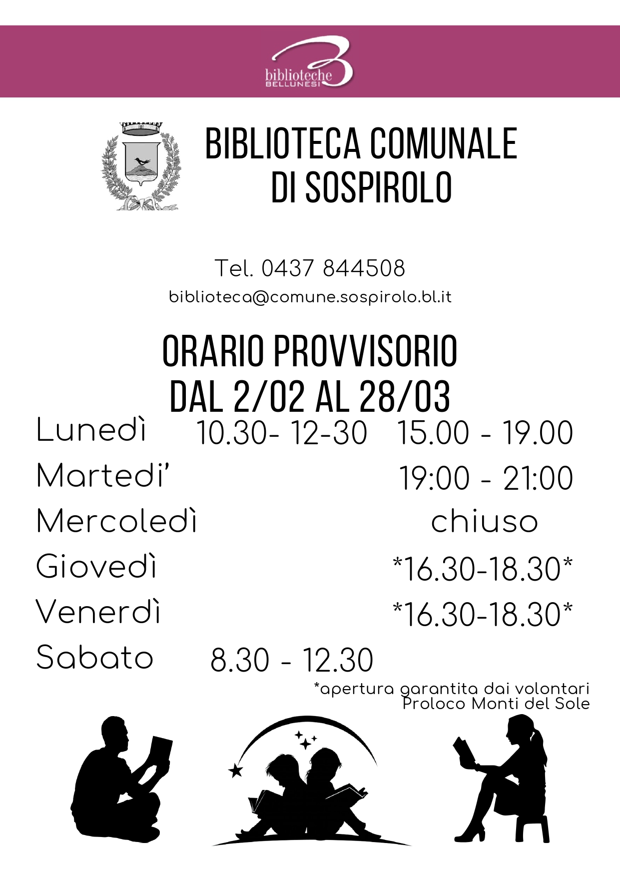 *apertura garantita dai volontari Proloco Monti del Sole
