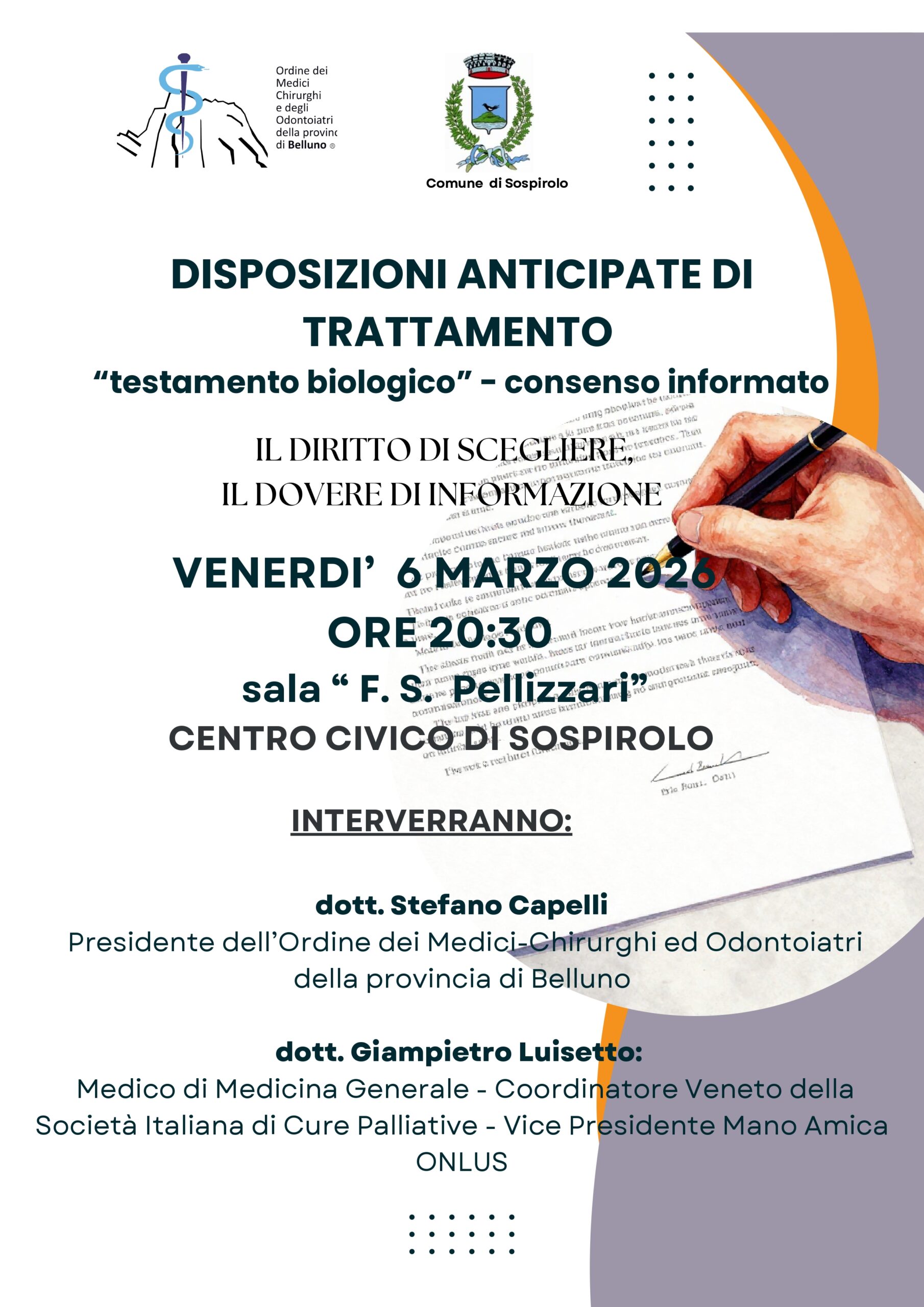 presentazione di cosa è la DAT con l'intervento del presidente dei medici chirurgici e odontoiatri e ed un medico di medicina generale